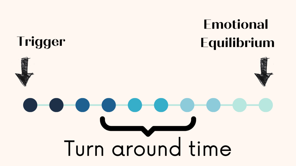 As healing occurs one can look for improvement in a shorter “turn around time”. This means simply that you are able to level out or calm down in a shorter amount of time. As the process of acceptance or growth continues the Turn Around Time becomes shorter and shorter.