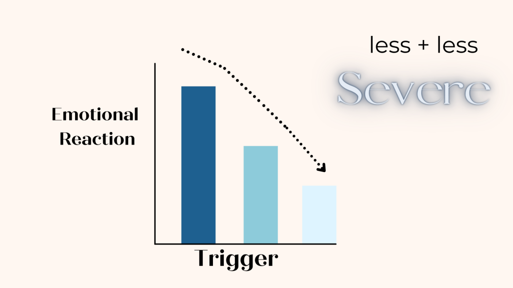 Once again, as you continue on your journey of reclaiming your emotional self, let this little graph empower you. As time goes on the LEVEL in which one reacts to a trigger does decrease in severity. So if you are being triggered but you aren’t experiencing such a strong surge of emotion then you should certainly be proud of yourself. Definitely do not overlook this clear sign of healing.
