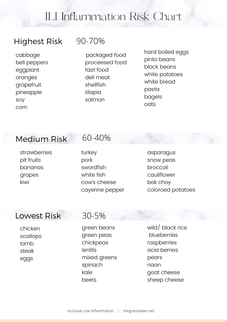 Instead of a total elimination diet, ILI Plan staggers the foods eliminated during the beginning, making it much easier to gauge your Inflammatory Comfort Level. In short, the methodology of ILI Plan focuses on fewer foods at a time. This makes it easier to discern what foods irritate your IC Level and how. (IE painful joints, painful gastro issues, swelling of the face, etc.) ILI Plan is not a diet but a lifestyle. If you “fall off” the plan you can always reference your Risk chart to help focus on less inflammatory foods.